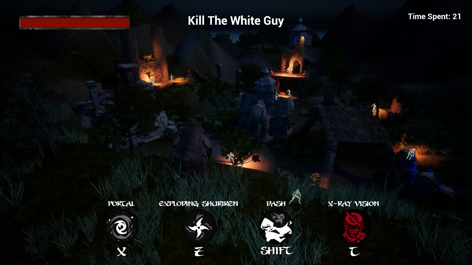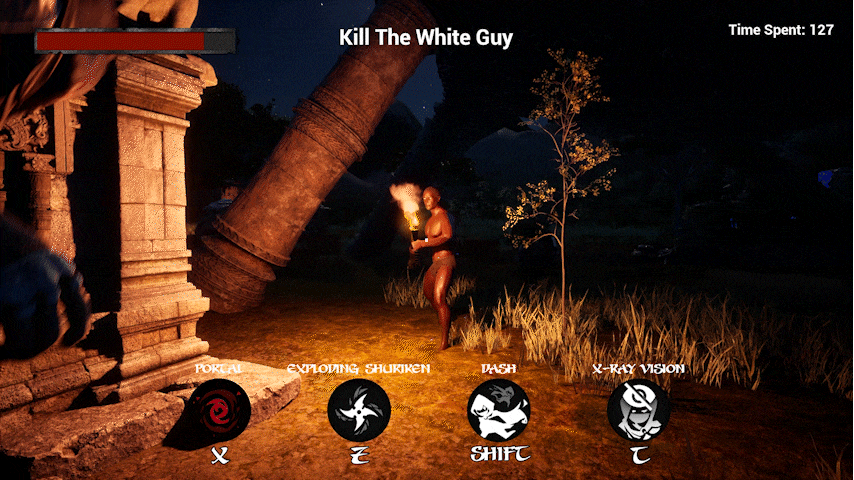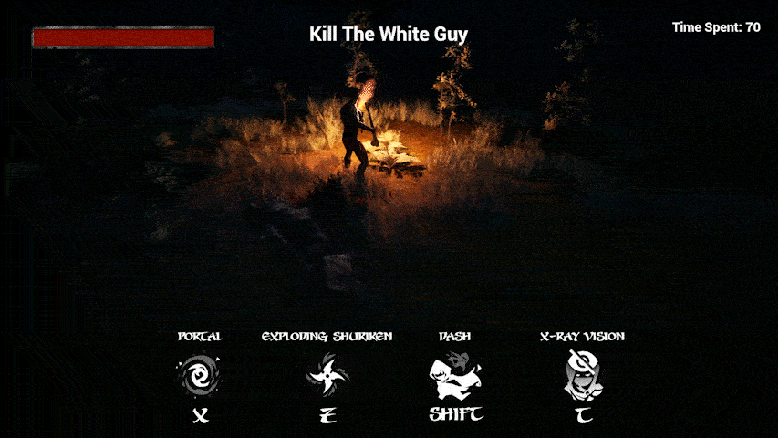 Shiga is a multiplayer stealth game set on an island. You play as ninjas with 4 abilities. Your objective is to find the enemy marked in white and eliminate them.