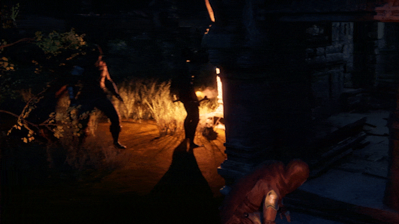 Approach from behind and perform a silent takedown by pressing E. You can also use your special skills.